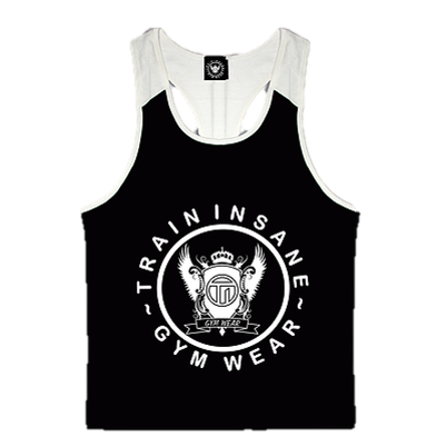 TI Fitness Stringer Vest Black & White, White Logo